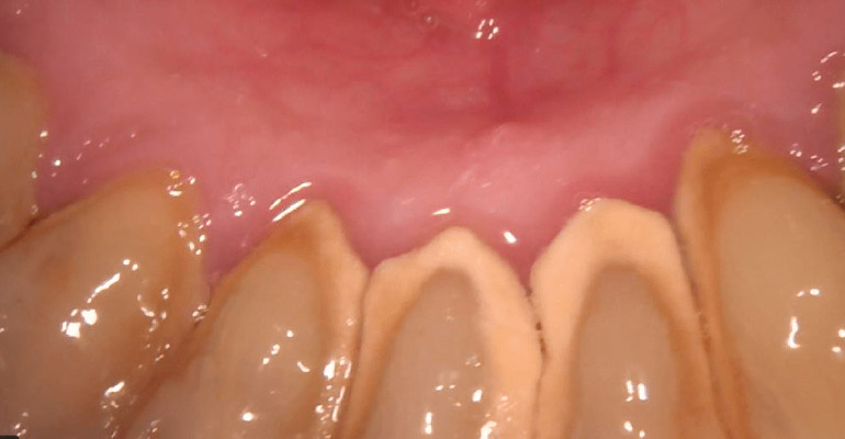 Paciente periodontal con caries incipientes radiculares y desgaste oclusal por bruxismo.